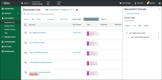 - create groups of related documents through the Document List – by accepting Kira's suggestions, or manually;